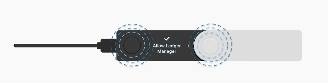 You may be asked to “Allow Ledger Manager” on your device: do so by clicking both buttons on your device: