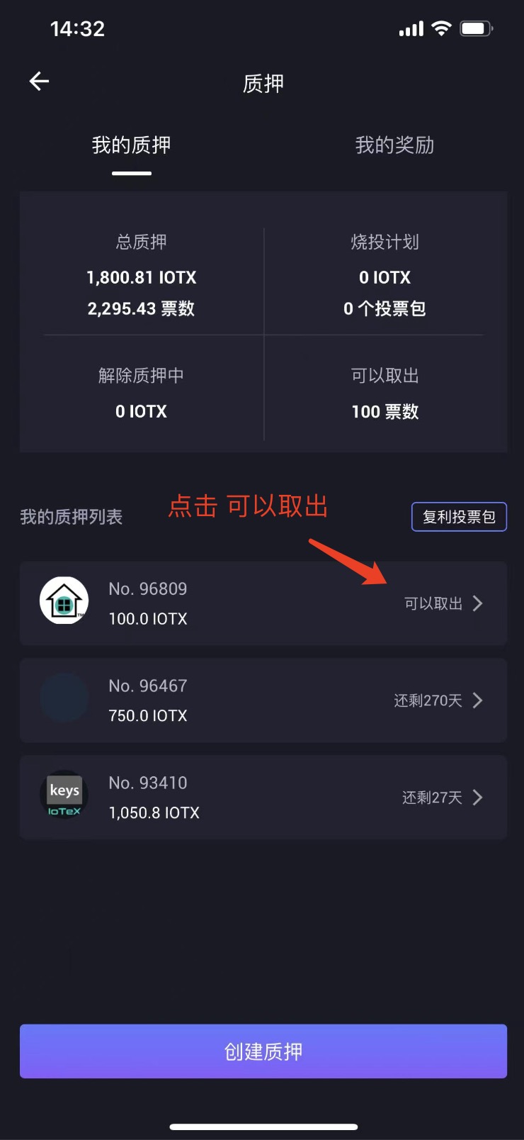 2、到期后解除质押,三天后赎回会立刻到钱包地址。