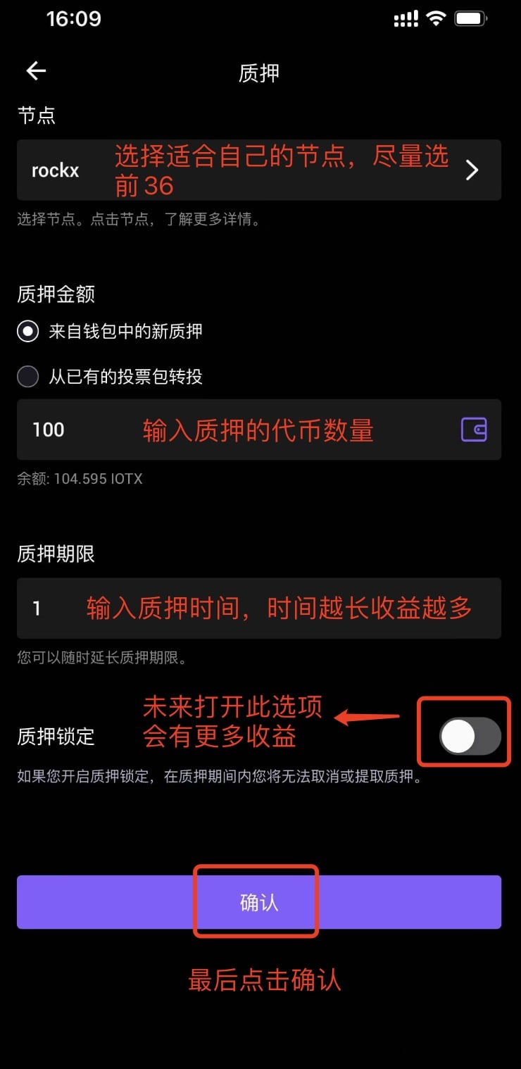 6)尽量选前36名节点收益比较多。在iopay质押不要选币安,没收益。