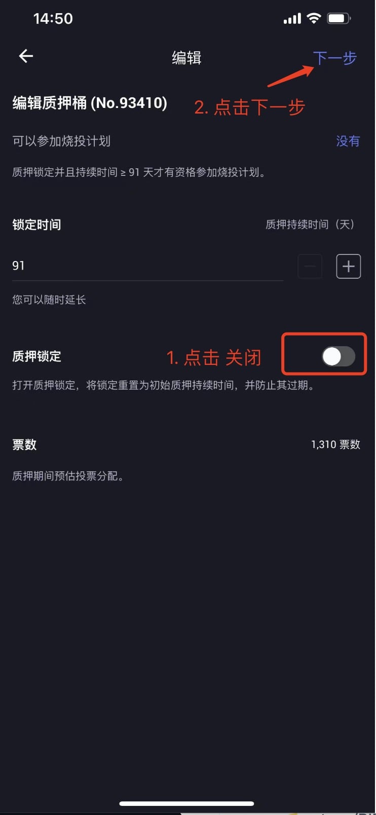 1、开启质押锁定的话需要先关闭,然后等到期才可以解除。