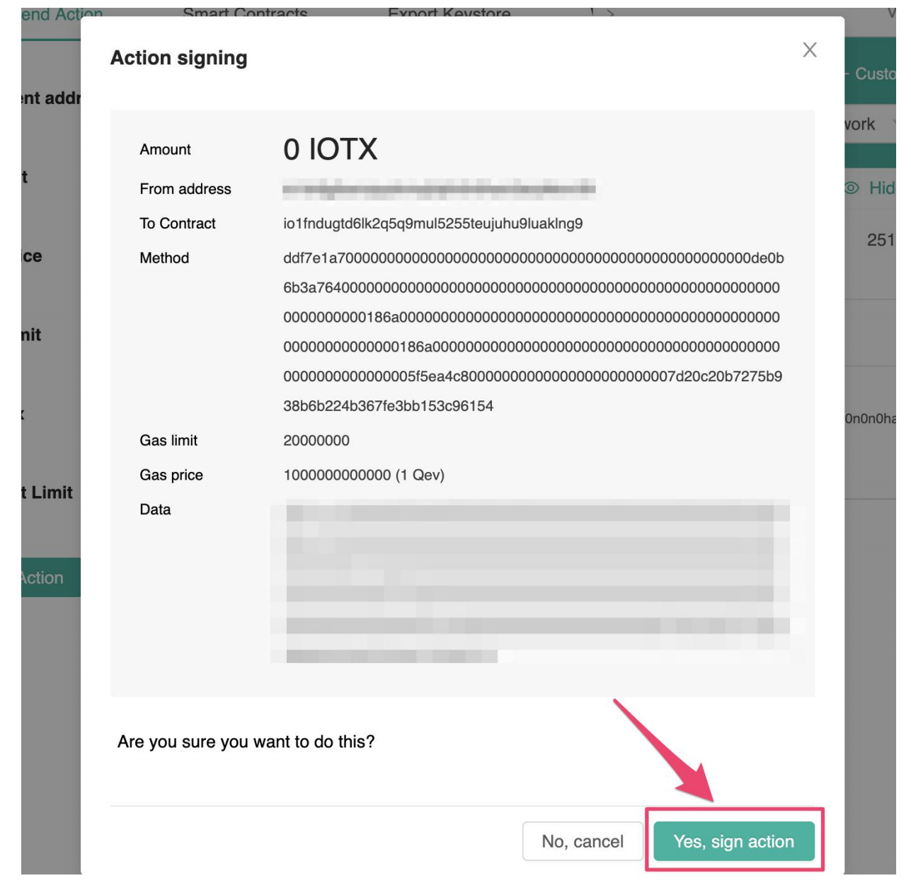 在确认发送交易前,请在底部弹窗中检查确认交易信息: